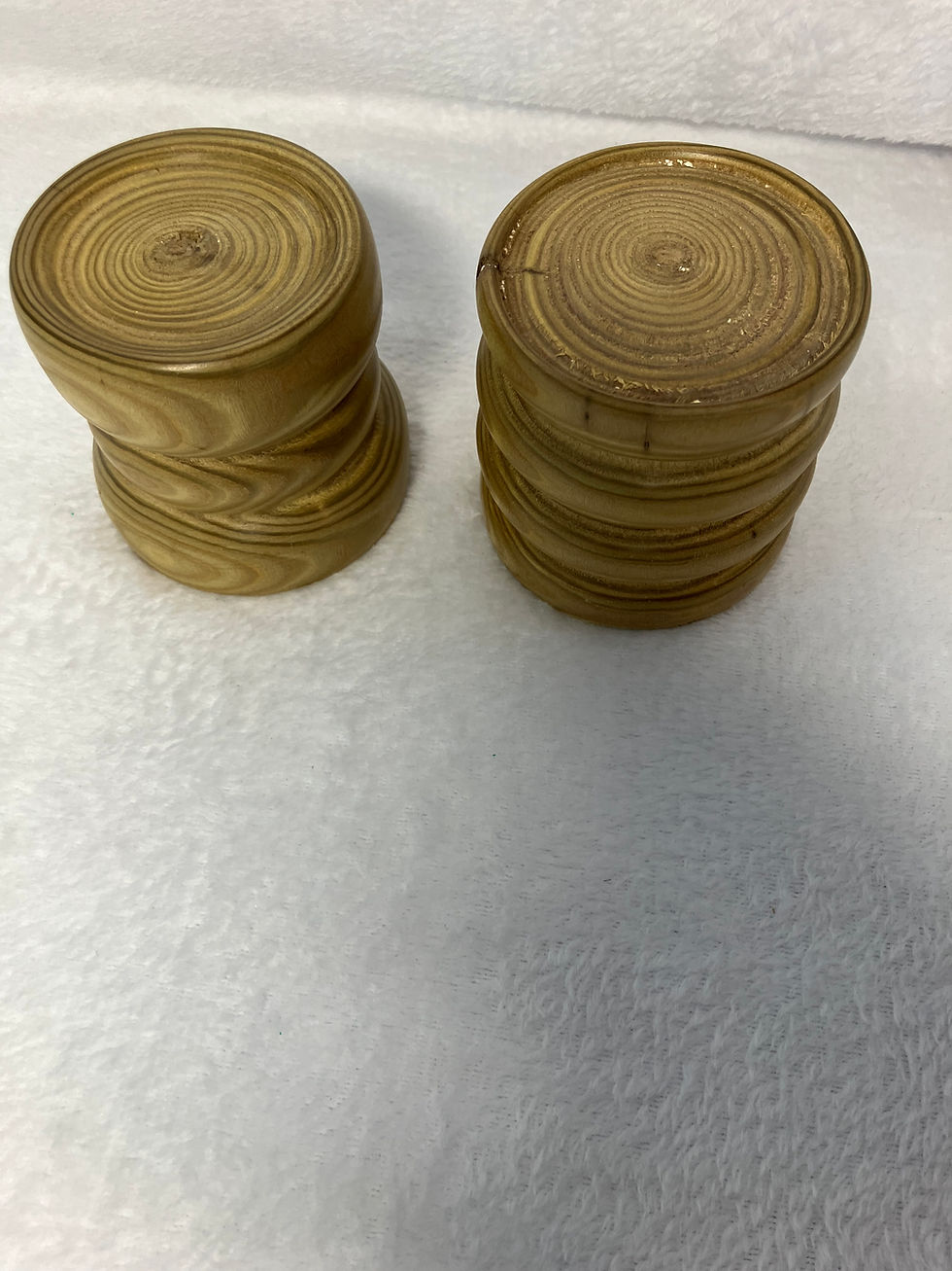 A pair of Ash wood turned candle holders